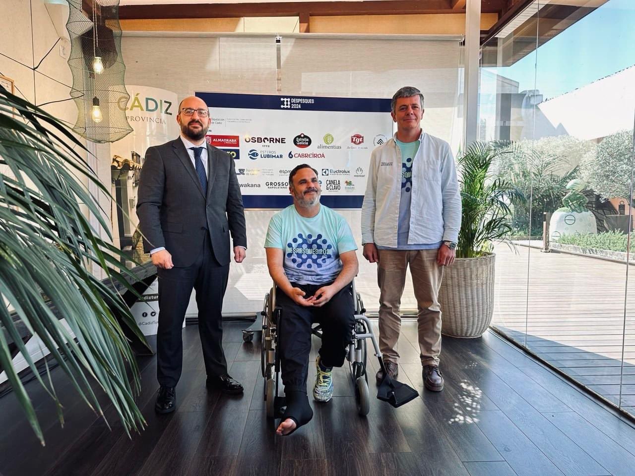 El chef de origen jerezano Ángel León, uno de los 'genios' de la cocina mundial en la actualidad, ha acudido este jueves a un acto de presentación de su evento de 'Despesques 2024' en silla de ruedas. El cocinero, de cuatro estrellas Michelin y una quinta verde por su labor medioambiental, ha acudido junto al vicepresidente 4º de la Diputación de Cádiz y diputado de Turismo, Germán Beardo, y el coordinador de I+D y Medio Ambiente de Aponiente, Juan Martín, al acto en Aponiente.