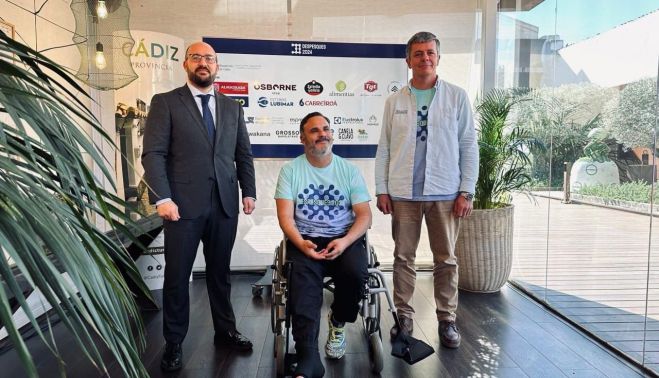 El chef de origen jerezano Ángel León, uno de los 'genios' de la cocina mundial en la actualidad, ha acudido este jueves a un acto de presentación de su evento de 'Despesques 2024' en silla de ruedas. El cocinero, de cuatro estrellas Michelin y una quinta verde por su labor medioambiental, ha acudido junto al vicepresidente 4º de la Diputación de Cádiz y diputado de Turismo, Germán Beardo, y el coordinador de I+D y Medio Ambiente de Aponiente, Juan Martín, al acto en Aponiente.