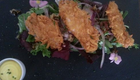 Unas mini hamburguesas con keftas de ternera, unas patatas a la riojana "a mi forma", un pollo korma hindú con vino de Jerez... "Eran mis especialidades y viendo que funcionaban hemos ido metiendo platos nuevos". Si la estrella es el pollo cornflakes con alioli de miel, no pasan desapercibidos para el público otros platos como la ensalada de cherrys y pesto o los mejillos gallegos con vinagreta tailandesa. Bacalao al carbón o sandwich en pan ecológico de cerdo desmigado a la barbacoa son otras de las sorpresas que depara la carta de este negocio hostelero que ha ampliado la ruta enogastronómica del centro de la ciudad. "Ya no acaba la gente a la altura de San Pablo, ahora gracias a varios compañeros hosteleros la gente llega hasta aquí. Nos daba pereza porque estaba siempre muy desangelado pero poco a poco se ha ido animando y la zona va resurgiendo", explica el cocinero jerezano.