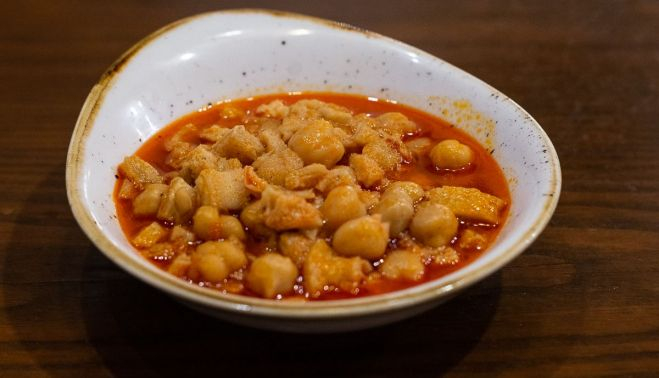 Menudo con garbanzos y punta de jamón a la hierbabuena