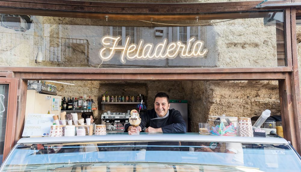 "Alicante es una potencia en el dulce. Allí tuve contactos con el mundo del helado, pero cuando llegué de vuelta a casa me sorprendí porque no teníamos", cuenta, haciendo memoria sobre una antigua heladería que tuvo su padre en calle Medina y luego en calle Porvera, que ya por en aquel entonces había cerrado. Animado por "experimentar" —lleva años colgando sus creaciones en redes sociales—, se echó la manta a la cabeza, compró la maquinaria necesaria y se animó a transformar sus dulces de obrador en manjares cremosos y fríos.