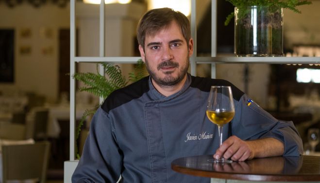 Nunca ser un mal estudiante resultó tan productivo. Javier Muñoz Soto (Jerez, 1983) pasó de hacer montaditos y fregar platos en el negocio familiar como castigo por sus malas notas a ser considerado por el rotativo británico Financial Times como el “chef del sherry”. Estamos en el número 2 de la calle San Francisco de Paula. Ubicado en un antiguo casco bodeguero de techos a dos aguas, La Carboná se ha erigido en los últimos años como uno de los restaurantes de referencia de la provincia de Cádiz para la prestigiosa Guía Michelín. Aquí, Javier, junto a un equipo de 10 cocineros, trabaja a diario en imprimir a sus platos un sello propio, en el que los vinos de Jerez tengan protagonismo más allá del típico chorreón en una sartén o una olla: gelatinas, reducciones, espumas, geles, aromas o el cada vez más clásico maridaje, para descubrir, por ejemplo, lo bien que casa un oloroso con un chuletón de vaca pinta de Cantabria, o un tartar de salmón con un fino en rama. Sin embargo, Javier quiere dar un paso más y ya estudia, junto a investigadores de la Universidad de Cádiz, cómo introducir el velo de flor, esa levadura que imprime carácter al fino, a sus platos. De hecho, ya la incluyen en la masa del pan que a diario cocinan en el restaurante, pero el objetivo es que de aquí al verano pueda incluirse en los primeros platos de una carta que, como el chef, y como La Carboná, evoluciona.
