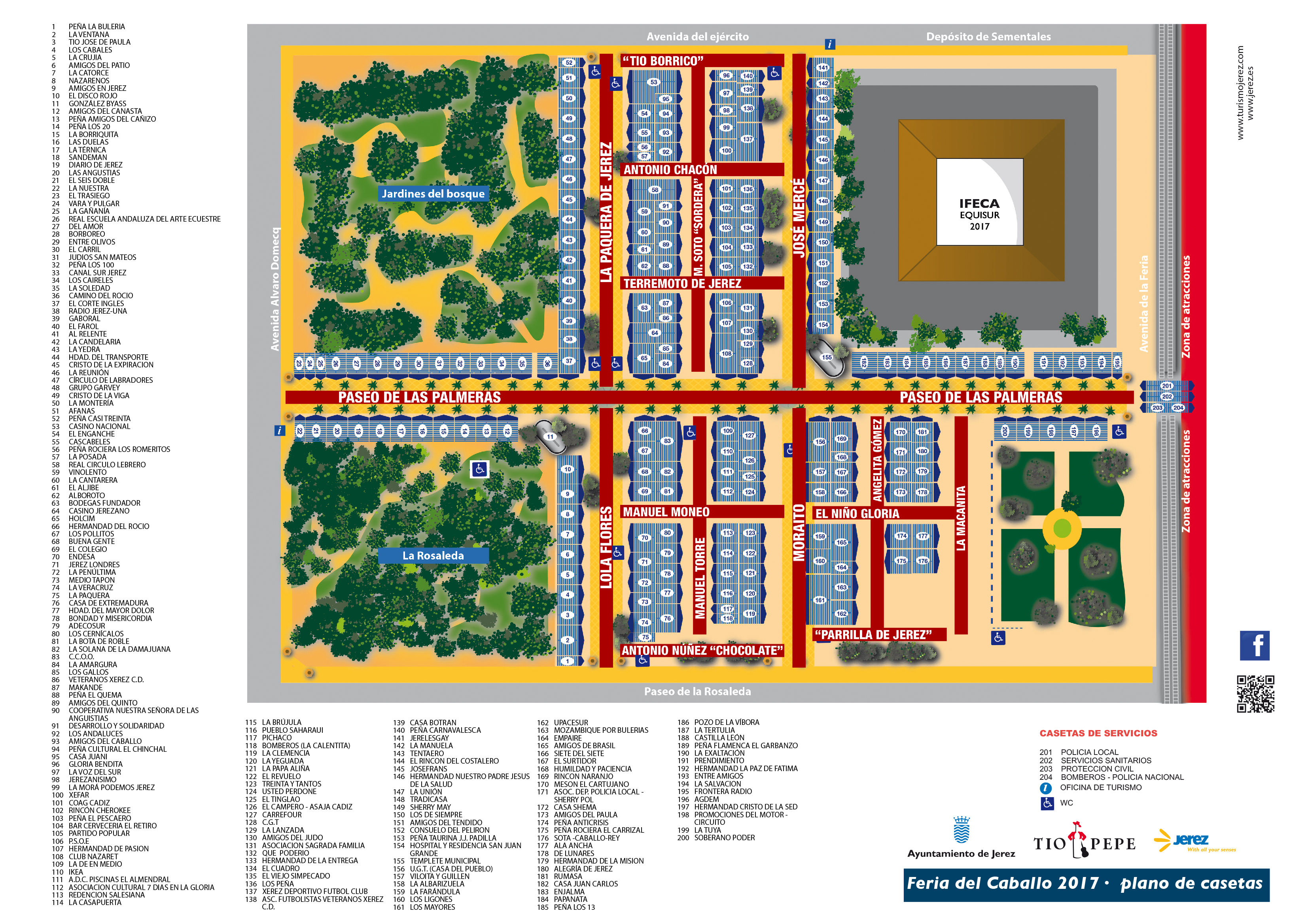 La Feria del Caballo 2017 ya tiene plano oficial. La junta de gobierno local ha aprobado la adjudicación definitiva de las casetas para la feria de Jerez que se celebrará del 13 al 20 de mayo, conforme a la Ordenanza Reguladora de la Feria del Caballo. Recordar que la junta de gobierno local del pasado 17 de febrero aprobó la adjudicación provisional de las casetas y que una vez los adjudicatarios han cumplido los trámites previsto,s el gobierno ha procedido a la adjudicación definitiva de las casetas.