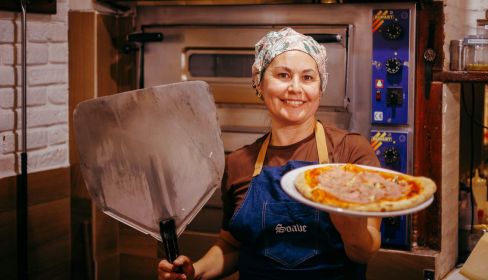 Desde el principio, la granadina ha contado con Fátima, que acaba de llevar a una mesa una Prosciutto Funghi, con tomate, mozzarella, champiñones y jamón. En su equipo también cuenta con David, al que ha transmitido sus conocimientos de la cocina italiana.