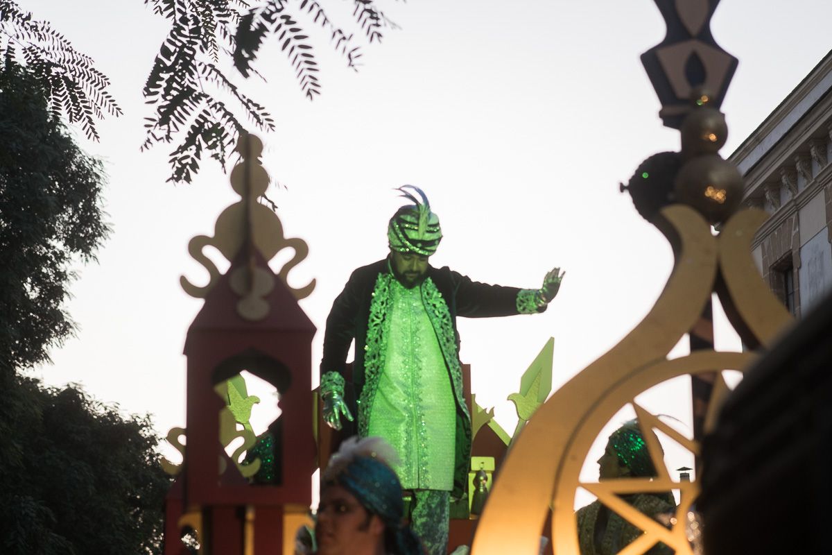 La cabalgata del Gran Visir discurre por las calles de Jerez para deleite de los más pequeños, que durante la tarde del jueves han disfrutado de un desfile en el que han participado 300 figurantes y de la que han formado parte dos carrozas, que han contado con el acompañamiento musical de la Agrupación Musical Santísimo Cristo de la Clemencia, Banda San Juan y un pasacalles.