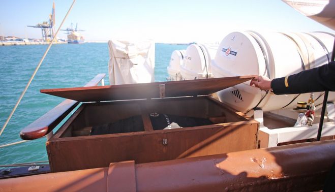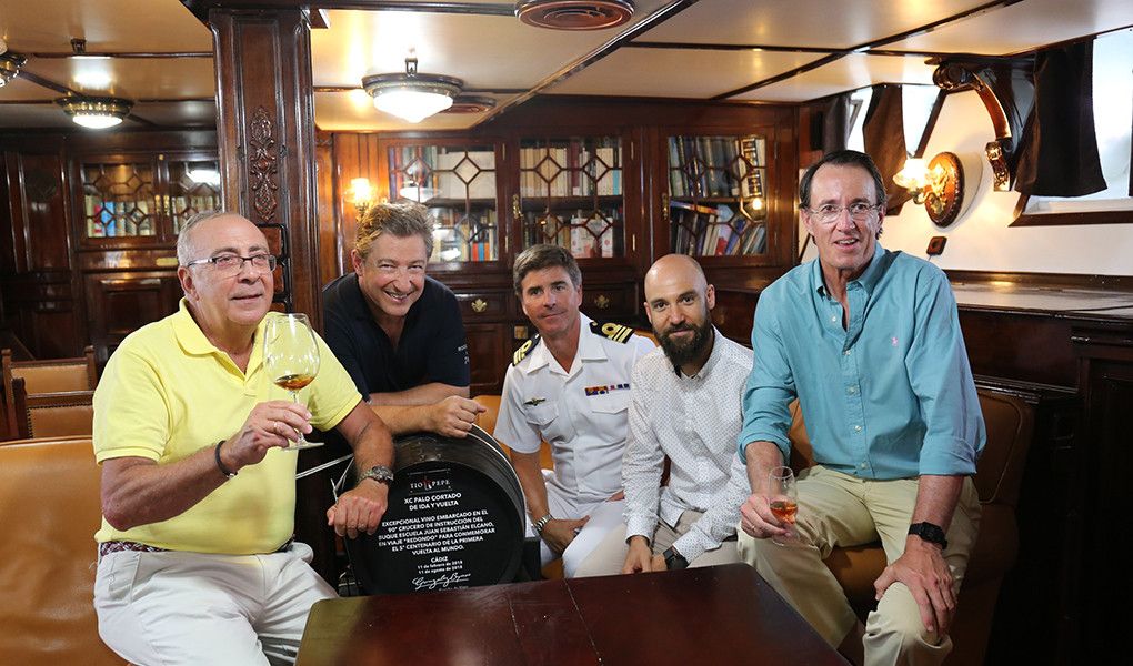 Mauricio González-Gordon, presidente de González Byass; Antonio Flores, enólogo y master blender de González Byass; Joan Roca, chef del Celler de Can Roca (tres Estrellas Michelin), y Juan Ruiz, jefe de sala y sumiller de Aponiente, (tres Estrellas Michelin) han estado presentes en la llegada del Juan Sebastián Elcano para recibir las botas que viajaban a bordo. Un momento único que recupera la tradición histórica de embarcar vinos en las largas travesías al tiempo que rinde homenaje a los marineros que dieron la vuelta al mundo por vez primera en el siglo XVI.