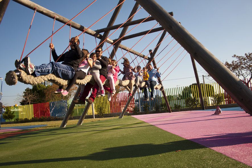 3. Los adultos pueden jugar y… ¡divertise! Únicamente les puede frenar la timidez o la apatía, ya que pueden subirse con los peques en atracciones como la soga balancín, los toboganes o la rueda holandesa, entre otros.