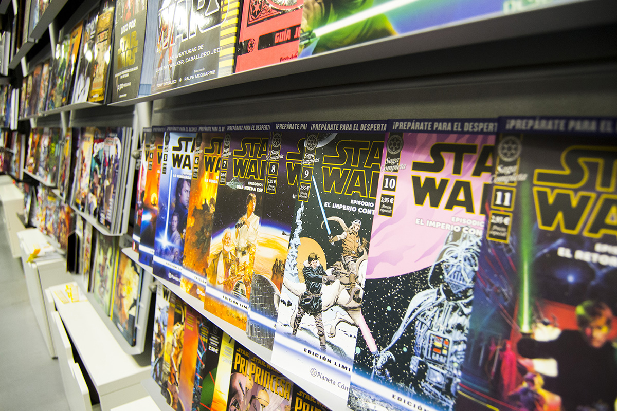 Cuando uno pasea por los exteriores de este local tiene la necesidad de entrar con tan solo observar el escaparate. En él se reflejan las últimas novedades donde destaca actualmente lo último de Marvel, las Secret Wars. “Intentamos abrir todas las líneas posibles de un producto. Si hay una película o serie de moda ofrecemos una promoción de algún producto que esté relacionada. Tenemos que estar atentos a las programaciones que se puedan hacer en series, películas o personajes de cómics. Por ejemplo ahora mismo Marvel ha sacado Secret Wars, una serie de cómics que pretenden captar a la gente desde el principio”.