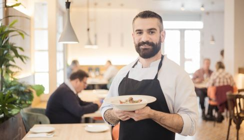 Juan continúa su andadura en la tierra en la que empezó en la hostelería cuando tenía 16 años. Dio sus primeros pasos en el restaurante El Farito hasta 2013, año en el que, con 20 años cumplidos, se mudó a Madrid “a probar suerte”. Y sí que la tuvo porque pronto se sumó al equipo de la taberna Los Gallos, uno de los restaurantes del Callejón Puigcerdá, considerada la milla de oro gastronómica de la capital. “Estuve cuatro años y medio con Jesús Almagro como jefe de cocina, me enseñó bastante”, cuenta a lavozdelsur.es.