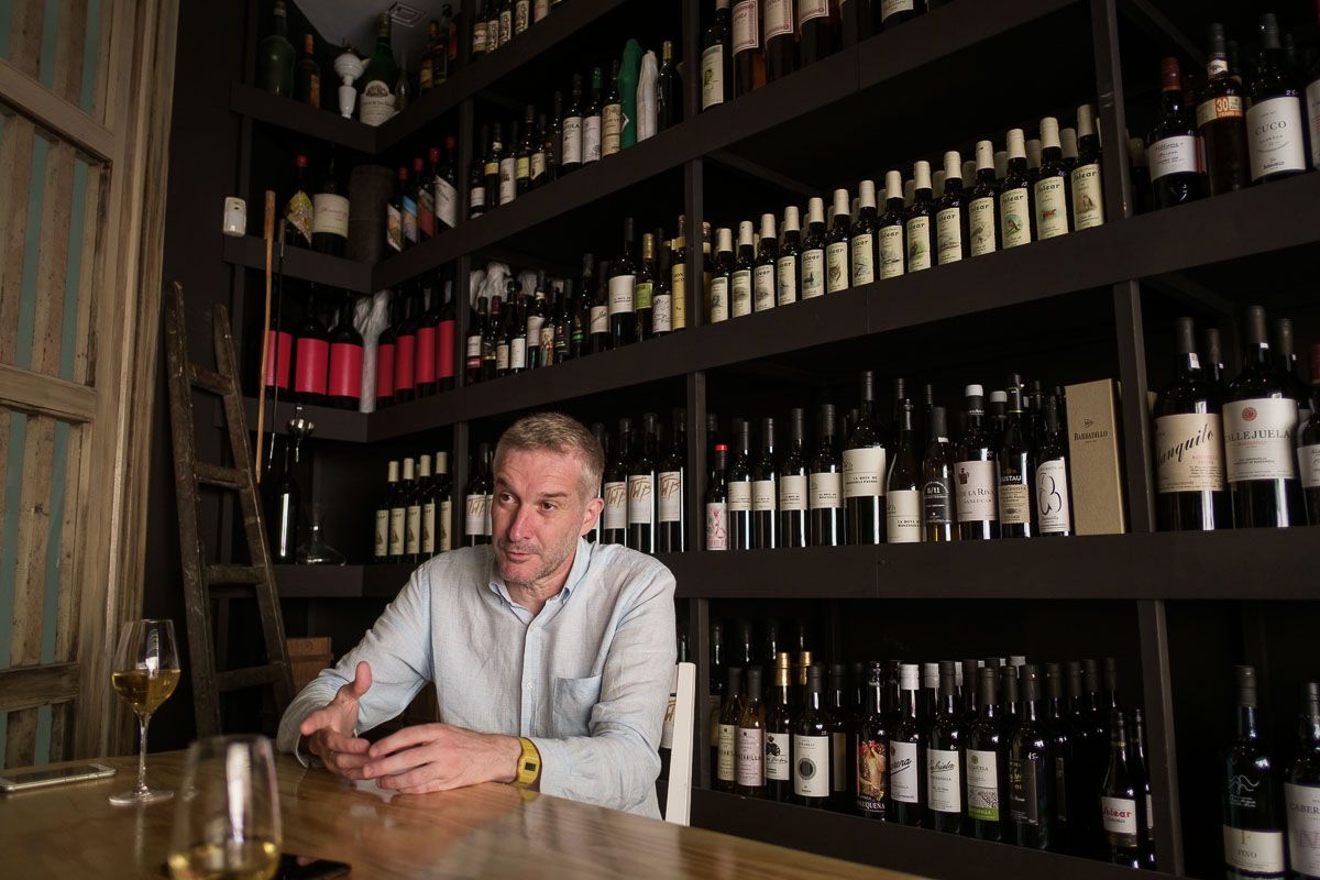 "Hoy no resulta tan raro —recuerda—, pero en el año 2008 es verdad que no era habitual encontrarse una tienda en España especializada en jereces. Aquello era una oportunidad, según lo veía, porque Jerez como zona era muy relevante internacionalmente aunque en aquel momento estuviera pasando por un mal momento. Aprovechamos aquella reforma también para una sala de catas, que sí que en España era algo muy desconocido, salvo la del Alabardero en Sevilla, que estaba enfocada a estudiantes". En un espacio tan pequeñito concentró las dos cosas. "Defendimos desde el principio un objetivo: que esto se convirtiera en un punto de encuentro de los aficionados a los vinos del Marco, y a los elaboradores locales. Personas que venían a intentar entender por qué los vinos de la región eran diferentes y también para las personas dedicadas a la elaboración, enólogos, comerciales... y realmente fue funcionando; no había muchas propuestas que intentaran ocupar este espacio".