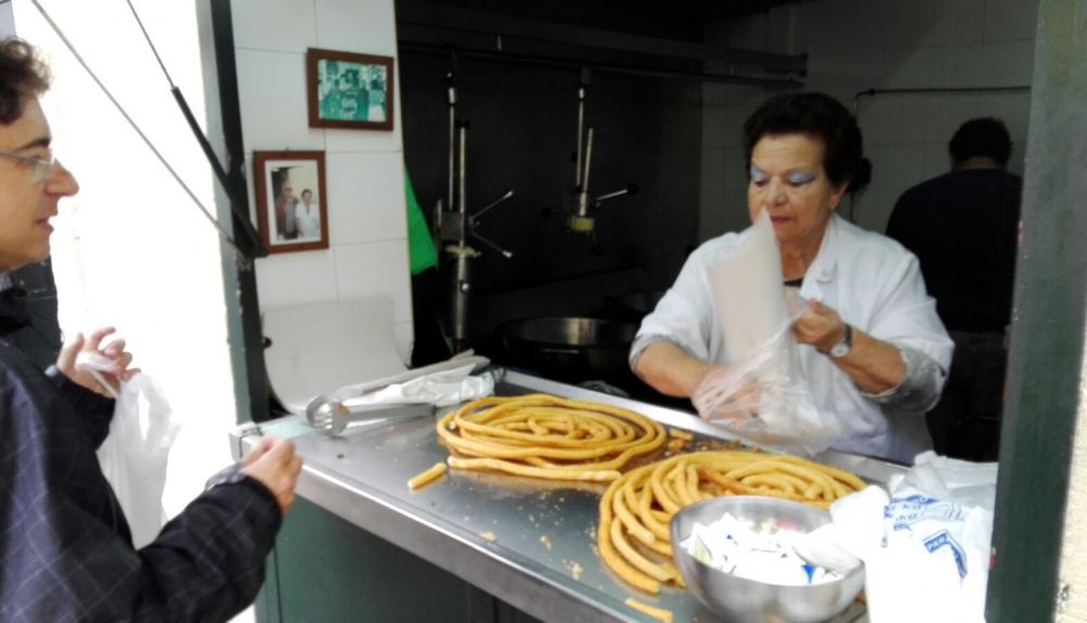 Antonio Mariscal Trujillo me recuerda también la existencia de otro puesto en el barrio de Santiago, justo delante del estanco. Pero el que ha cerrado sus puertas más recientemente ha sido el de la barriada de La Plata, a la espalda del mercado. Mi padre sostenía que eran los mejores de Jerez, y no iba mal encaminado. La clave de unos buenos churros está en el aceite. De la temperatura al depositar la masa y de su excesivo uso o no dependerá una buena digestión posterior. En su última época, abriendo sólo los fines de semana, el puesto de La Plata tuvo una competencia que se mantiene hoy día, la del Bar Canalejas, a donde vamos cada Domingo de Ramos para cumplir con la tradición, y que no desmerecen en absoluto de los de su hermano mayor ya desaparecido.