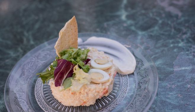 - El Fogón de Mariana del Centro Comercial Bahía Sur, con su ensaladilla suave de almadraba con lomos de melva y piparra.