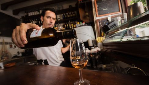 Como anécdota, narra que algunas vez “algún turista nos ha pedido probar todos los vinos desde el oloroso y el fino hasta el palo cortado, amontillado y el cream; lo han hecho, pero les que puesto algo de picar porque no son conscientes de cómo saldrán de aquí”. Al visitante le gusta, subraya, ver a las once de la mañana gente con su copa, “para ellos es una señal de calidad de vida”. El tapeo es obligado siempre con una gastronomía en concordancia con el espíritu del bar, “cosas típicas de Jerez; todos los días tenemos un guiso netamente jerezano”.