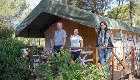Ya al mando del negocio, la sevillana, con raíces jerezanas —"mi bisabuela fue Concha Garvey y esta finca llegaba hasta las 500, en Jerez, y Miramundo, en Medina"—, se confiesa, entre pinos y una leve brisa de aire fresco, "aquí es que se está de lujo. "Como me gusta esto tanto, quería convertirlo en mi medio de vida, así que me harto de trabajar de abril a noviembre, porque aquí no se para, y el resto del año lo dedico a estar con la familia y viajar". Y bromea: "A ver si llego a seis meses trabajando y seis meses de vacaciones". Acampar al aire libre nunca fue más cómodo y estimulante.