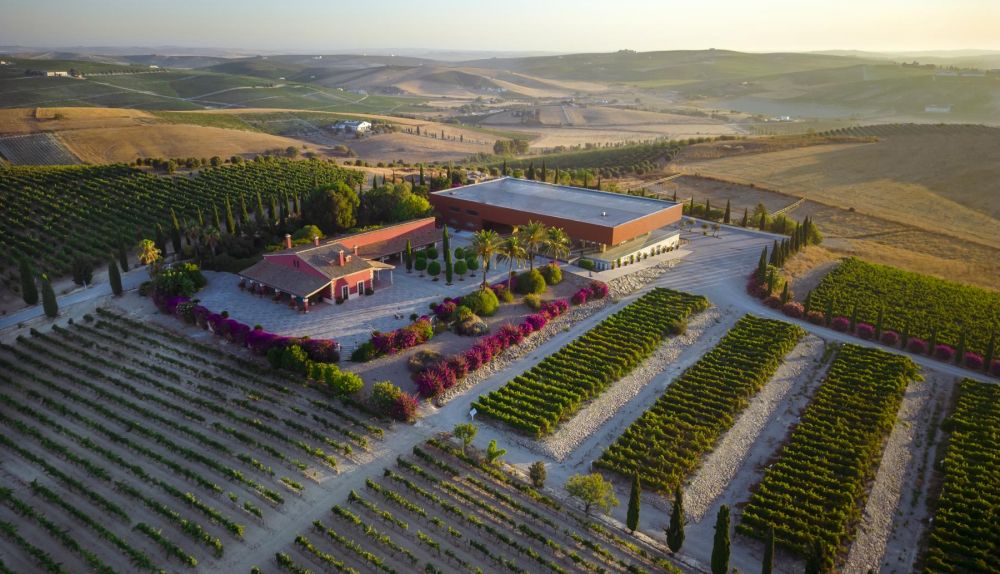 Sus viñedos, donde más temprano comienza la vendimia en el Marco, comprenden 25 hectáreas y esta extensión se ocupa en su mayoría por viñas de seis variedades de uvas tintas que dan lugar a exquisitos vinos de la tierra de Cádiz y de la Denominación de Origen Jerez, además de los muy de moda vinos de pasto.