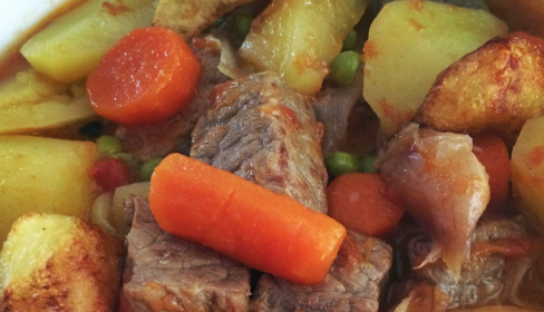 Esta semana queremos compartir con todos vosotros un guiso muy rico que hemos preparado y que estamos seguras de que os va a gustar, estofado de ternera con patatas. Y para enriquecerlo y darle un toque especial, de nuevo hemos usado vino blanco Gran Mayeto, de Bodega El Gato. Este guiso se puede preparar, o bien de la manera tradicional, agregando las patatas al guiso unos quince minutos antes de terminar la cocción; o bien fritas, añadiéndolas al final de la cocción. De ambas maneras el guiso está estupendo, así que como más os guste.