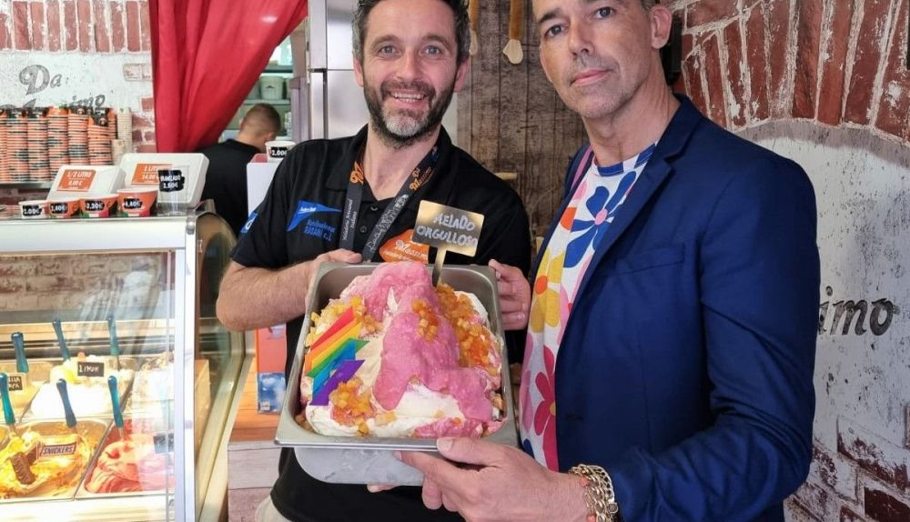 Massimo Pozzi afirma que su empresa colabora desde hace varios años en el Orgullo y destaca que la organización de la fiesta en la Plaza del Castillo le ha animado aún más a incorporarse al evento con este helado, que combina colores como el blanco, el rosa y el amarillo, luciendo la bandera del Orgullo.
