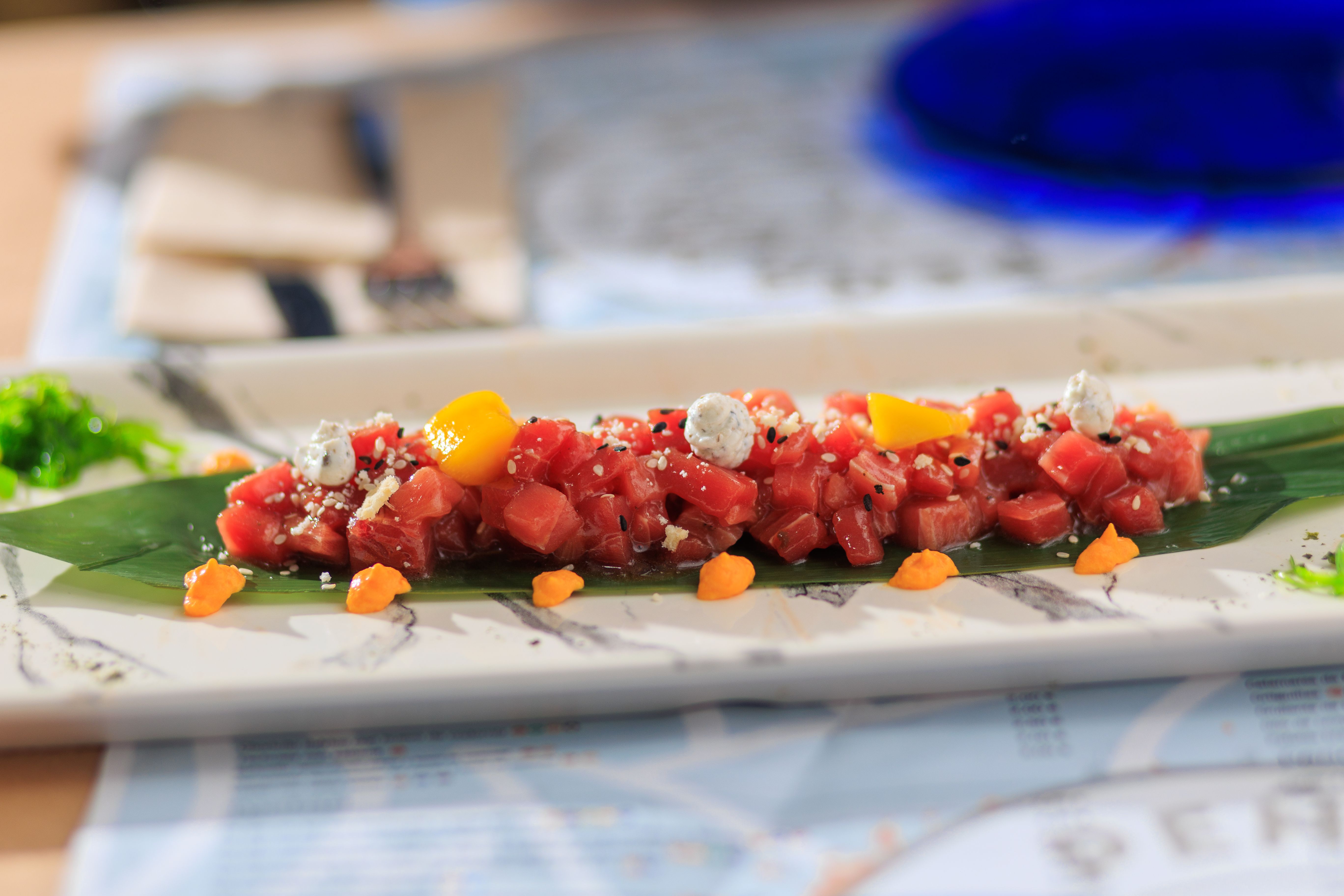 En la Peña El Cartucho puedes encontrar la misma oferta gastronómica, que va desde la preparación en su forma tradicional, como el atún mechado a lo más actual, del sashimi de toro a los crudos como el tartar, “y las ideas nuevas como son los tacos de atún made in Barbate, que también se han hecho famosos”.