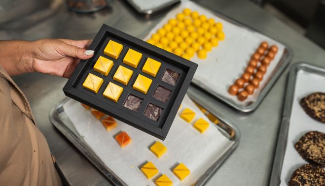 Y tanto. Porque al año siguiente, cuando las brevas brotaron, se secaron y cayeron en forma de higos misteriosos, en plena canícula del Bajo Guadalquivir, aunque la primera decisión fue vender los higos a granel, la numerosa y lenta mano de obra que precisaba recogerlos de uno en uno colocó a Raúl en la disyuntiva de seguir con aquel negocio repentino o arrancarlo todo y olvidarse para siempre. Sin embargo, tiró por la calle de en medio y se puso a fusionar el dulzor natural del higo con el del chocolate belga. La mixtura sabía deliciosa, pero aquel experimento casero había que profesionalizarlo de algún modo, definirlo, refinarlo, diversificarlo, poetizarlo, adornarlo y comercializarlo. Así que, como en todas las historias reales, “tuvimos que tirar mucho de lo que hacíamos al principio porque la verdad es que ni Loli ni yo teníamos ni idea del chocolate”.