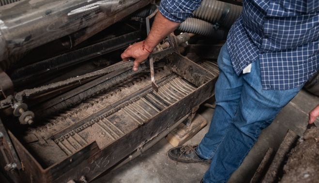Raúl Sánchez ha tenido tan buena escuela en su padre –que vive aún y, a sus 88 años, no falta ni un solo día al campo de las marismas lebrijanas–, que a cualquier hora se le puede ver dándoles una vuelta a sus higueras. “Lo mejor es que necesitan poca agua, pero desde que hice el embalse no han parado de aficionarse los pájaros a comerse las metidas de las higueras”, apunta El Mimi. Por eso su intención es techarlas con una especie de invernadero. A él el esfuerzo no le parece tanto porque está acostumbrado a innovar. Incluso inventó él mismo una máquina para recoger los higos de la tierra porque le pareció inviable económicamente hablando que pudieran soportarse los jornales necesarios para recogerlos a mano. La máquina, de escasa altura, se engancha al tractor que pasa por entre las higueras y va recogiendo los higos mucho más fácilmente por debajo de las copas.