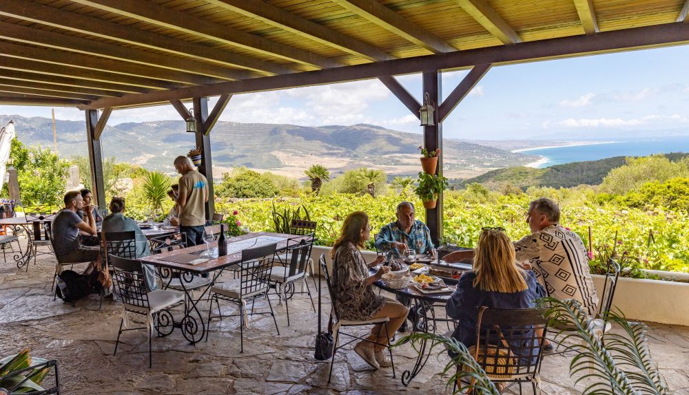 Desde su terraza, sobre un pequeño viñedo decorativo, se divisa el Estrecho en su plenitud, con Tarifa, la isla de Las Palomas, Ceuta y Tánger en el horizonte. “Esto se vende solo, estas vistas son incomparables”, defiende Manuel García, orensano que se mudó hace casi veinte años a Tarifa y que ahora es el encargado de El Tesoro, en ausencia del propietario del negocio, que va y viene de Norte a Sur de España.