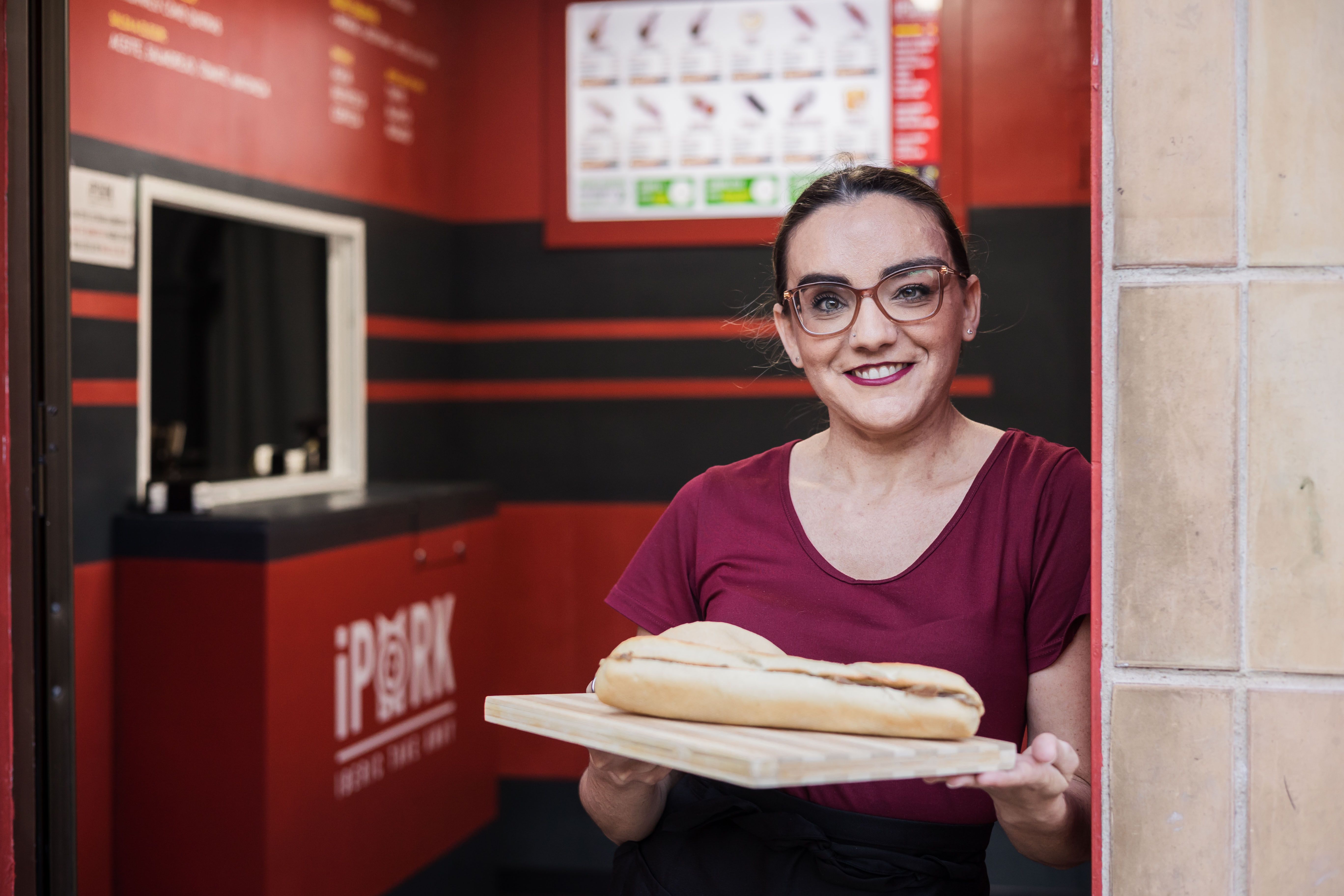 El pasado 29 de julio abrió sus puertas en la plaza de Ronda, en la populosa barriada de La Granja de Jerez, IPork, un servicio de comidas al estilo take away —para llevar a domicilio— basado en productos ibéricos de bellota. "Estábamos buscando algo novedoso para volver al barrio y encontramos esta oportunidad", cuenta María Martín, copropietaria del negocio junto a su pareja, Adrián Salas.