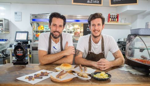 Sin embargo, llegó el momento de conectar ambos caminos y sumar fuerzas. “Qué mejor que dos hermanos unan fuerzas, vayan hacia adelante, y además lo hagan en su ciudad. Vuelta a casa y con una acogida fantástica, no podemos pedir más”, expresa Ramón, el hermano mayor y el dueño por ahora de la cocina de la Tasquita. A su vera, Eliseo, responsable de sala, tiene también brillo en los ojos por la oportunidad de estar codo con codo junto a su hermano: “Se alinearon las cosas y nos decidimos a tener algo en nuestra tierra, propio, con nuestra esencia y nuestro rollo. Teníamos muchas ganas de empezar, era un sueño”.