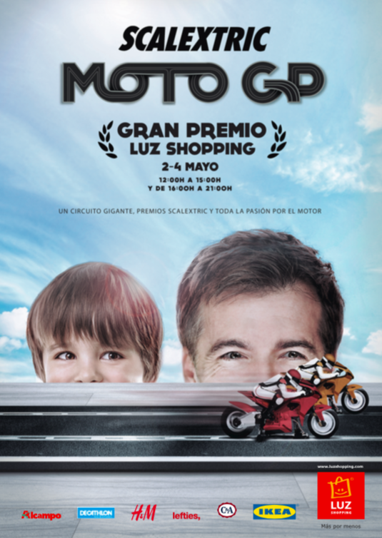 Con motivo de la celebración del Gran Premio de España de Moto GP 2015 en el Circuito de Jerez que se va a celebrar el próximo fin de semana en el circuito de Jerez, el complejo comercial Luz Shopping ha querido sumarse a esta iniciativa organizando su propia competición de motos. De esta forma, los amantes de la velocidad tendrán la posibilidad de emular a sus pilotos favoritos de motociclismo a través de un scalextric gigante, de 18 metros cuadrados, que será una réplica exacta del trazado jerezano. El scalextric estará situado en la Zona Central junto a la plaza de restauración.
