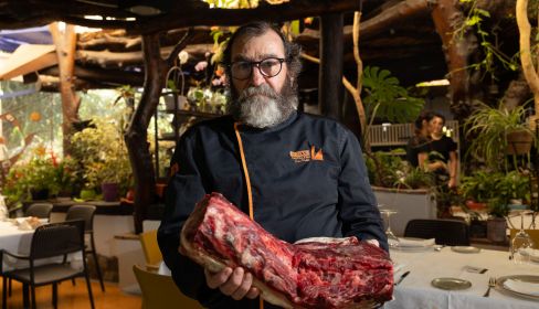 Con su frondosa barba —“me la dejo para la temporada, es lo que vende”, bromea— y sus gafas de montura redonda tiene más aire de científico intenso que de parrillero-cocinero, más pinta de literato valle-inclanesco que de meticuloso maestro asador. Quizás la carne sin infiltración, sin exceso de calor, magra, en su jugo, sea pura poesía cuando sale de la cocina de su restaurante. Vuelta y vuelta, al punto, a un punto más.
