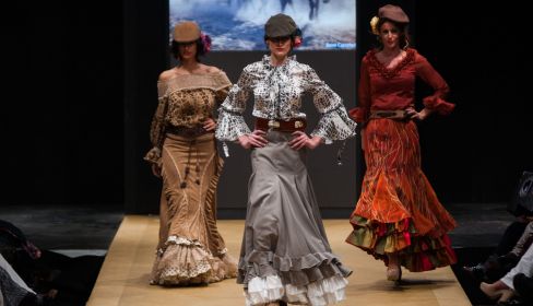 A continuación, ha tenido lugar el primero de los desfiles a cargo de Flamenka, Aurora de María Luisa Beato, Rocío Martín Degitana, Ana Ricardi y Faly, de la Feria al Rocío de Macarena Beato participado con sus diseños en un pase conjunto muy concurrido a beneficio de la Hermandad del Rocío de Jerez. En la gran mayoría de sus diseños se pudo ver a una gitana rociera con vestidos canasteros, algunos con los volantes un poco subidos y también con trajes de dos piezas al estilo bandolero. Reinaban los estampados típicos florales y los lunares, aunque también se dejaron ver algunos vestidos de un solo color. Los tejidos típicos, el plumeti, la seda y otros más actuales como las transparencias, vestían a la mujer rociera. En cuanto a su gama cromática, esta fue bastante variada, donde desfilaron propuestas en tonos pasteles (rosa, verde agua, lila...) y colores más atrevidos como amarillos y naranjas.