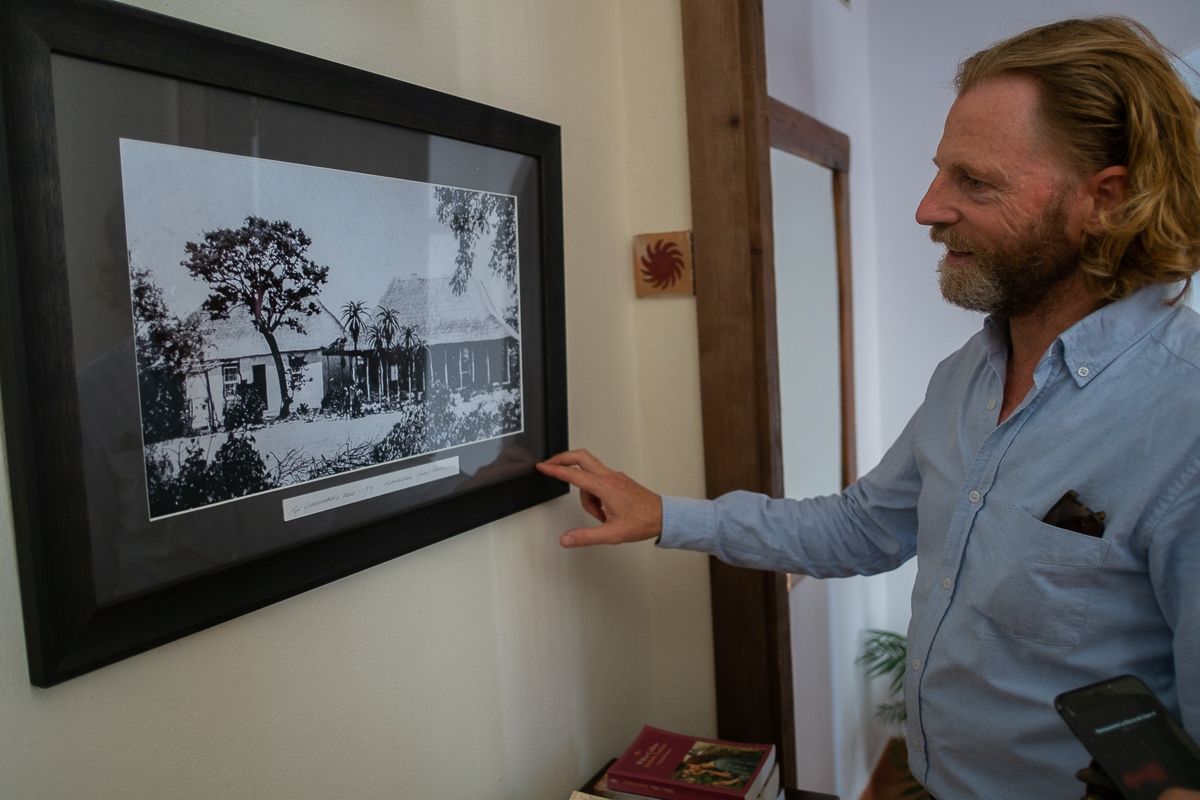 De aquellas primeras ocho habitaciones, hoy han crecido hasta un total de 34 si se cuentan las existentes en la unión de las ocho casas que componen el complejo del Califa, además de las de Plaza 18, inmueble rehabilitado y que ha abierto sus puertas recientemente como hotel boutique de lujo. En temporada alta, el grupo da trabajo a unas 80 personas, que se reducen a la mitad cuando llega el otoño-invierno. El crecimiento del proyecto de Stuart ha ido parejo al boom turístico de Vejer, en la ruta de los pueblos más bonitos de España. En una de las paredes del establecimiento, donde se evidencia rápidamente el gusto de su alma mater por la fotografía, hay una imagen en la que aparece el Volskwagen escarabajo de James, con sus tablas de surf en el techo, y cerca del icónico vehículo pasa un vejeriego con su burro y sus cerones.
