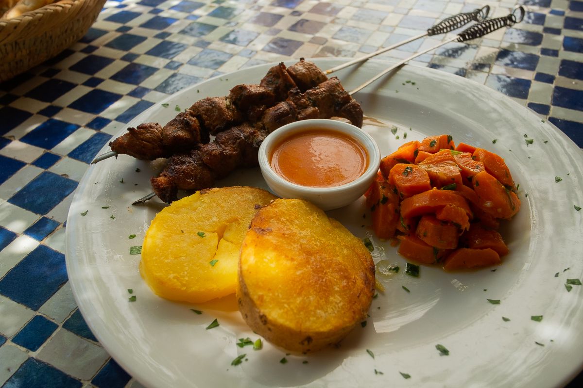 Pinchos de cordero, en el Jardín del Califa. FOTO: MANU GARCÍA