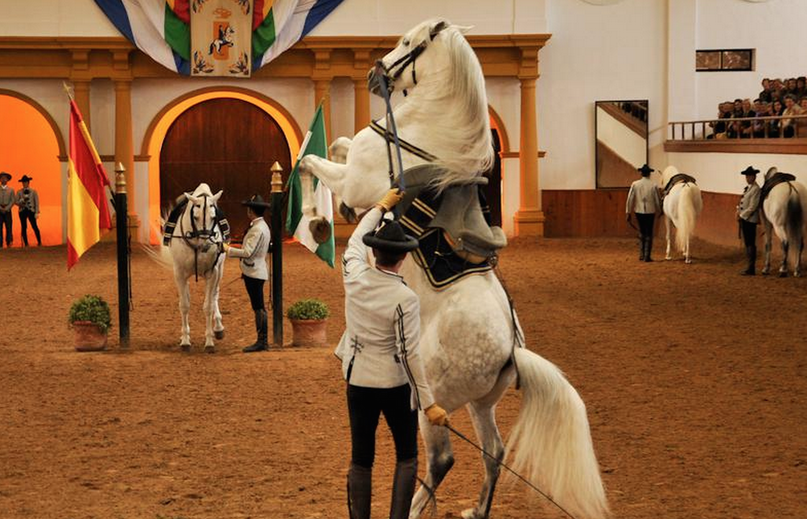 La actuación Cómo bailan los caballos andaluces, que se desarrollará en el picadero interior de la institución a partir de las 12 horas, es un ballet ecuestre con música netamente andaluza y española además del vestuario de gala a la usanza del siglo XVIII.
