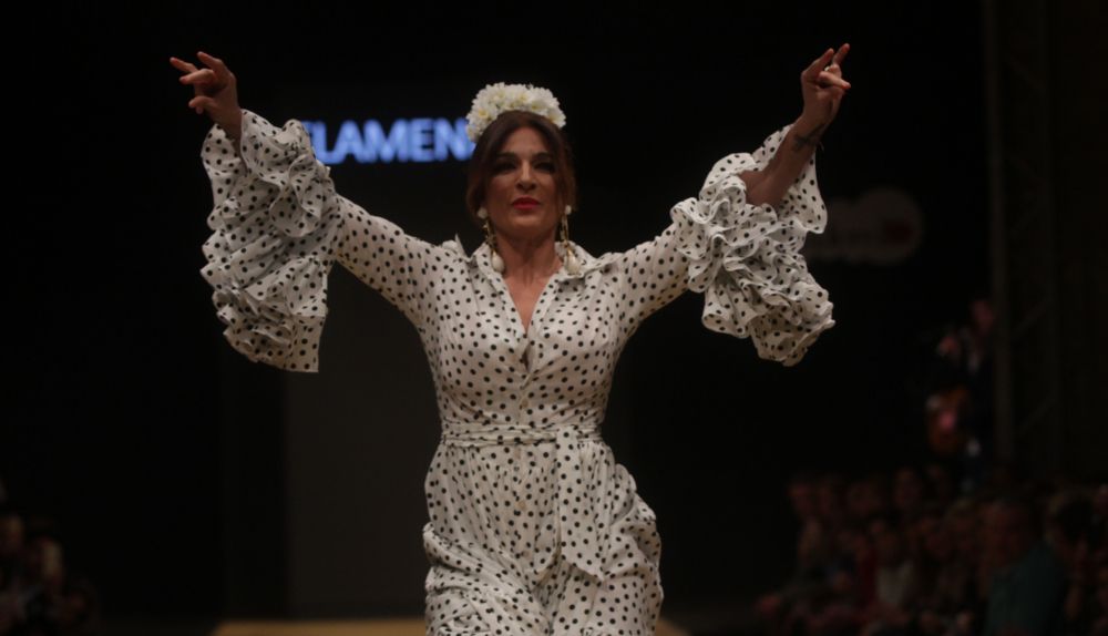 Astola, que abrió el desfile interpretando un baile flamenco con bata de cola negro y mantón blanco, arrancó los primeros aplausos a los asistentes. Ovación que se repitió con la salida a la pasarela de la diseñadora rodeada de sus modelos.
