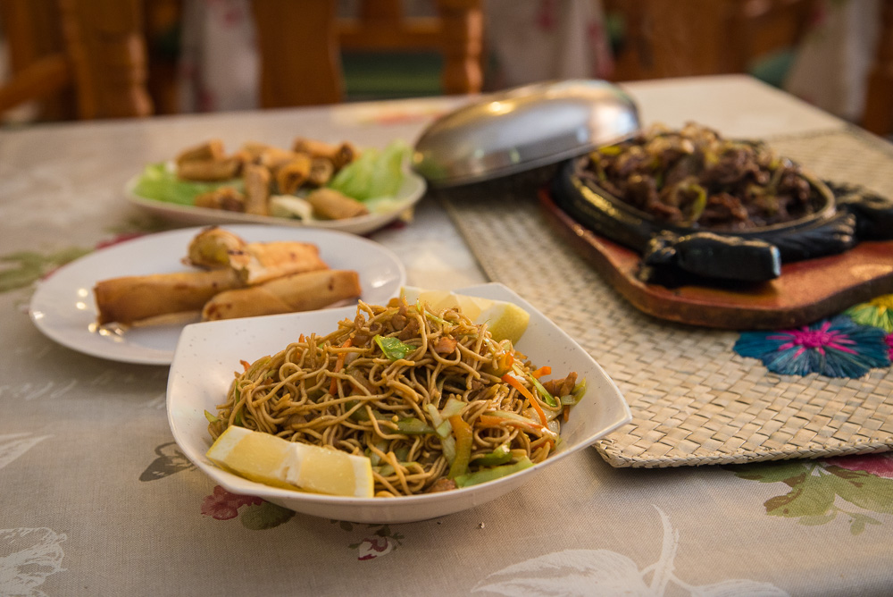 En su restaurante, lleno de elementos decorativos típicos de su país, lo que más vende es el arroz de la casa, que lleva gambas, jamón, huevo, cebolleta, y soja. No es de extrañar que se pida tanto. Luego están los tallarines fritos, la lumpia —rollitos de primavera fritos— o la ternera con ajo a la plancha, que también tienen gran acogida. Y los platos filipinos: pancit bihon (fideos de arroz), pancit canton (fideos de huevo) y el lechón kawali, que es panceta frita con salsa de soja, “como si fueran chicharrones”, lo define el dueño del local.