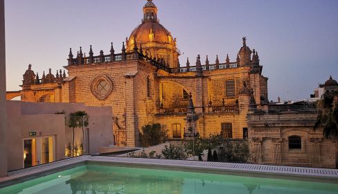 Calles emparradas y patios andaluces, así como el Alcázar y la Catedral de Jerez, rodean al “Mejor Alojamiento Enoturístico” de España, haciendo de su ubicación un enclave mágico. Y es que el Hotel Bodega Tío Pepe, con sus 27 habitaciones, es un lugar único donde el visitante puede despertarse con las vistas únicas del corazón histórico de Jerez de la Frontera.