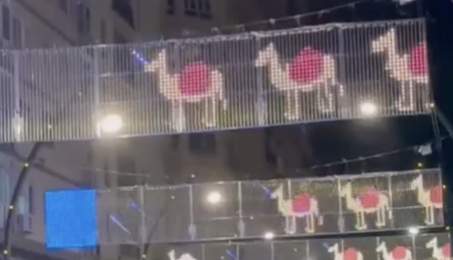 Las luces de Gran Vía llaman la atención porque cuentan con animación cambiante, movimiento y distintos motivos navideños que no dejan a nadie indiferente. Reyes Magos, regalos, copos de nieve... pero los que más ha causado sensación en las redes son los camellos "lanza impactruenos" o que disparan "rayos" y "fuego".