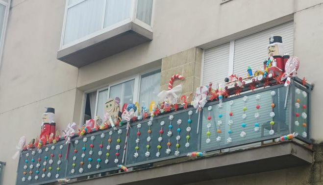 Soldados de cartulina y todo tipo de elementos navideños se observan no solo en el balcón, que ha sido fotografiado en innumerables ocasiones por todo el que pasa por delante, sino también en las escaleras y en las puertas de las casas.