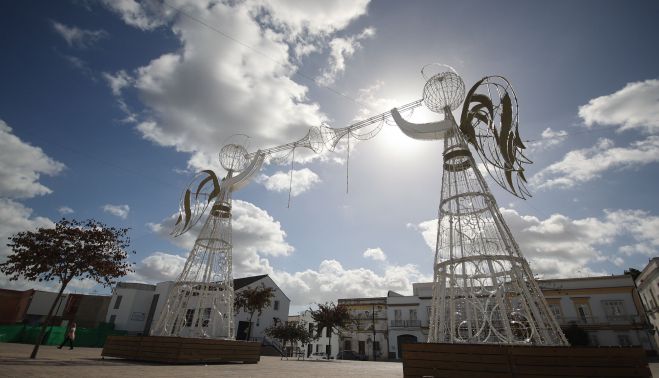 Entre los atractivos de unas fiestas que la ciudad vive con especial intensidad estará en esta ocasión un enorme pórtico de luz y color que decorará la Plaza Belén. Dos enormes ángeles con trompetas que servirán de reclamo para un punto del intramuros jerezano que quiere convertirse de nuevo en un atractivo del centro de Jerez por Navidad.