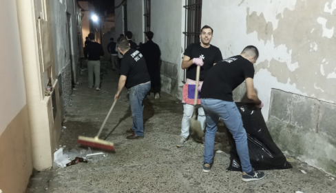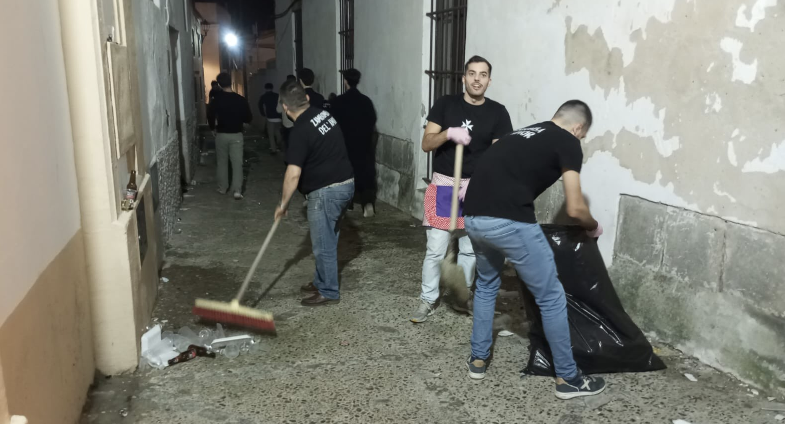 Y tras la Zambomba, varios hermanos de la referida hermandad limpiaron la calle de toda la basura que se había generado.