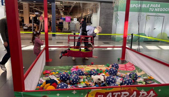Desde este jueves 26 y hasta el sábado 28 de diciembre ha instalado una piscina repleta de juguetes en la que los pequeños pueden atrapar regalos. El juego recuerda a esas máquinas con ganchos que se encuentran en las ferias en las que se pueden coger desde peluches hasta relojes.