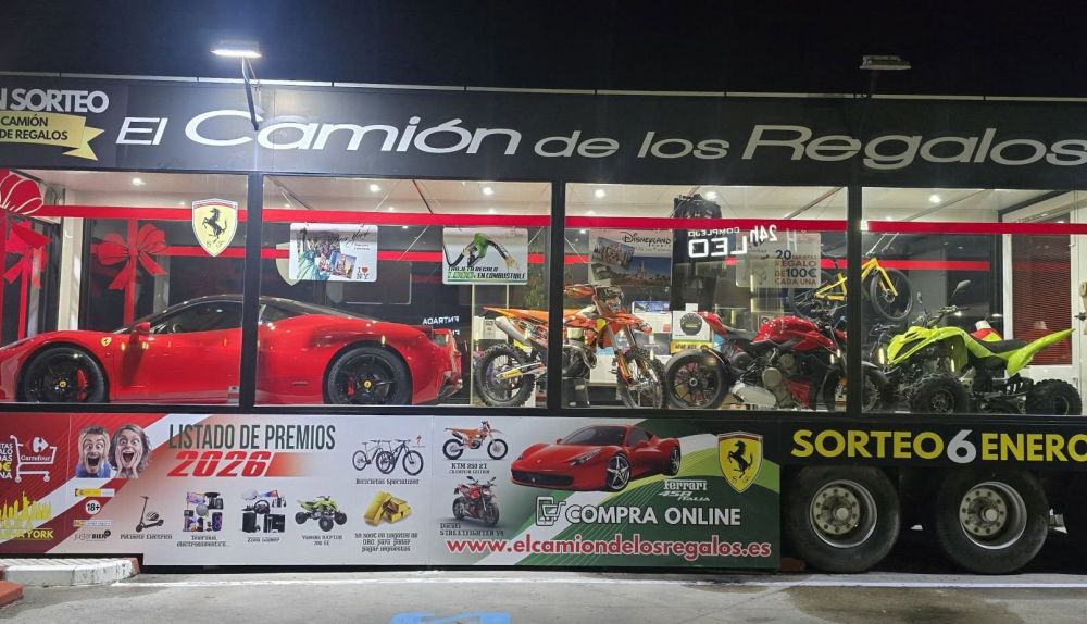 La cesta de Navidad más grande de España se sortea en un pueblo de Extremadura, Monesterio, donde hay un camión de los regalos valorado en más de 300.000 euros. Desde un Ferrari a un viaje a Disneyland París, 60.000 euros en oro, motos, coches y todo tipo de electrodomésticos.