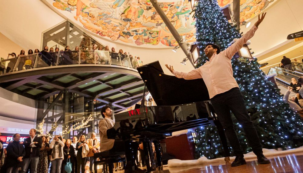 Antes de las ocho y media de la tarde, ya había un runrún en las cercanías de los cines y en la zona de restaurantes del centro comercial de la zona Oeste de Jerez, que ha abierto de esta manera tan alucinante la Navidad de 2022. Teóricamente era todo una sorpresa, como corresponde a cualquier flashmob (multitud, traducido al castellano), pero el público que visitaba Área Sur sabía que algo se cocía: un piano de media cola, cámaras de televisión, cadenas de radio... La gente que no se quedó viendo en casa el mal trago de la Selección disfrutó a las nueve menos cuarto de la noche de la parte más conocida de Carmina Burana, del compositor alemán Carl Off. A las ordenes su director, José Miguel Román (Jerez, 1993), el grupo de voces interpretó la citada pieza y la propina de dos villancicos archiconocidos: Una pandereta suena y Noche de Paz.