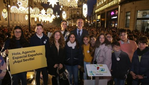 La tarde del mismo lunes en el que Sevilla conoció que albergará a la Agencia Espacial Española se activaron las miles de bombillas que decorarán con motivos navideños 287 calles y plazas de la capital hispalense. Una pequeña vestida de astronauta o un chico con un cartel saludando la buena nueva tan espacial complementaron la celebración, con el alcalde Antonio Muñoz a la cabeza.
