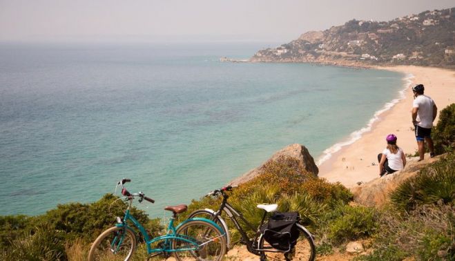 Sin salir de la provincia más al Sur de España, ya hay un tramo de nivel moderado que puede ir recorriéndose sin necesidad de aventurarse, por ahora, a emprender el Tour del Mediterráneo, ni ser un biker-adicto. Uno de ellos, va desde Facinas, una bella aldea perteneciente a Tarifa, y el pantano de Almodóvar, hasta Los Barrios, en pleno Campo de Gibraltar, por el Camino de Ojén. Una antigua carretera entre los dos núcleos poblaciones que fue construida por batallones de presos políticos tras la Guerra Civil. Casi 17 kilómetros de tour ciclista que atraviesan el parque natural de Los Alcornocales —una de las reservas de la Biosfera más grandes de Europa— y que ofrecen retos apasionantes para el ciclista iniciado, como la subida al Puerto de Ojén, y paradas imprescindibles como el mirador del mismo nombre, desde el que se divisan paisajes inolvidables como los de las sierras de Ojén y de Luna.