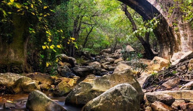 Las ruinas de antiguas acequias y molinos, el empedrado del suelo, un puente de estilo medieval y la fuente de las Niñas emergen tímidamente entre la exuberante vegetación de esta selva tropical, el último vestigio de los bosques que poblaron el continente hace millones de años. No es raro que sea uno de los senderos preferidos en la provincia de Cádiz.