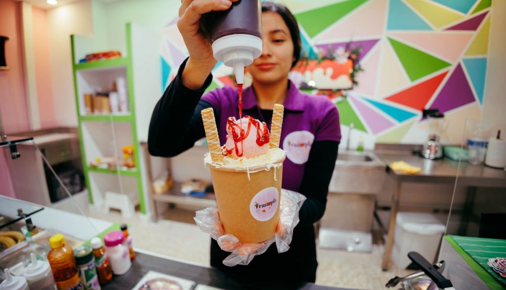 Algunos de los postres que se ofrecen en Fruitopia han tenido un recorrido viral en TikTok y otras redes sociales, pero no es la fama digital la que define al local, sino la autenticidad y la calidad de los productos. Entre esos postres, se encuentran las famosas fresas con chocolate de Dubai, todo un fenómeno en redes. “Algunas personas dudan al principio de ciertos ingredientes, como el queso, pero quien prueba, repite. Esa es nuestra mejor publicidad”, asegura Kendy.