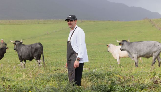 "Es una carne muy noble, con más infiltración de grasa que, por ejemplo, la retinta. Precisa muy poco tiempo de lumbre, poca elaboración. Es mucho más jugosa que la carne de vacuno convencional. Es una maravilla para disfrutarla, para comerla, pero también para trabajarla en la cocina".