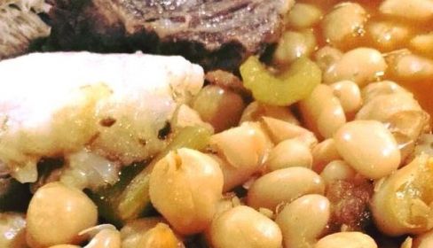 Tres vuelcos de este imprescindible de la gastronomía nacional por 16 euros: el caldo con fideos, los garbanzos y la verdura, y por supuesta, la hipercalórica e irresistible pringá (chorizo, morcilla, tocino de papada y jarrete).