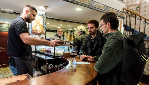 Esa mezcla de la tradición artesana ceramista de la zona y la hostelería es frecuente en el entorno de este cruce, como ocurre en la muy fotografiada fachada de Montalván, perteneciente al edificio construido por el arquitecto Juan Talavera, parte de otra de las viejas fábricas alfareras, hoy bar restaurante de la familia Arcas, los fundadores de Las Golondrinas, ese pequeño e histórico bar del segundo tramo de Antillano Campos, donde lo que vuelan sobre la barra no son los becquerianos pájaros sino los caballitos de jamón que, junto con los champiñones rellenos, entre otros bocados, son santo y seña de las tapas de la casa.